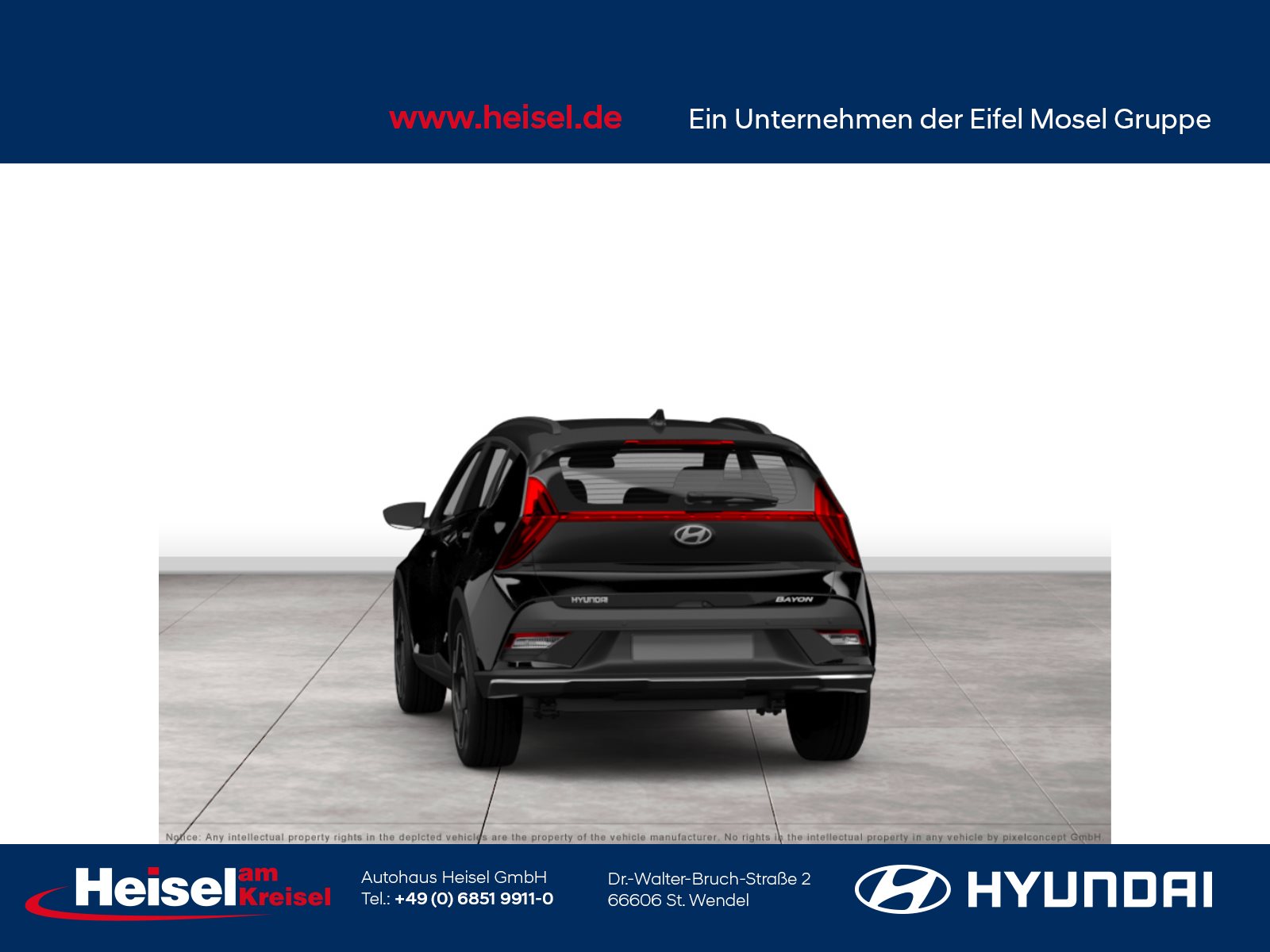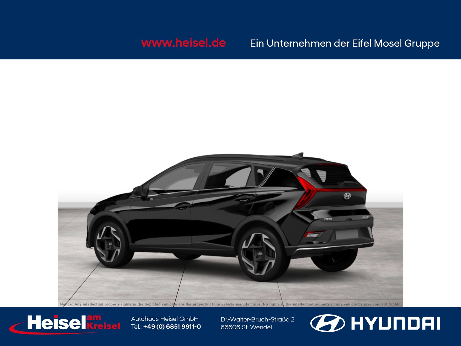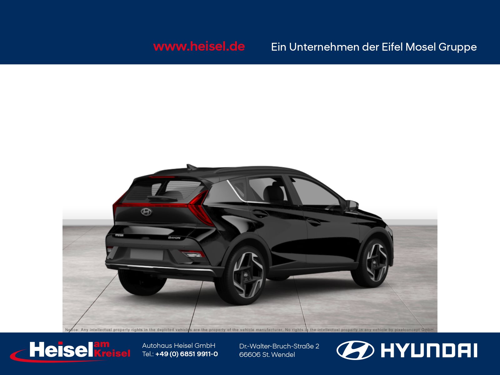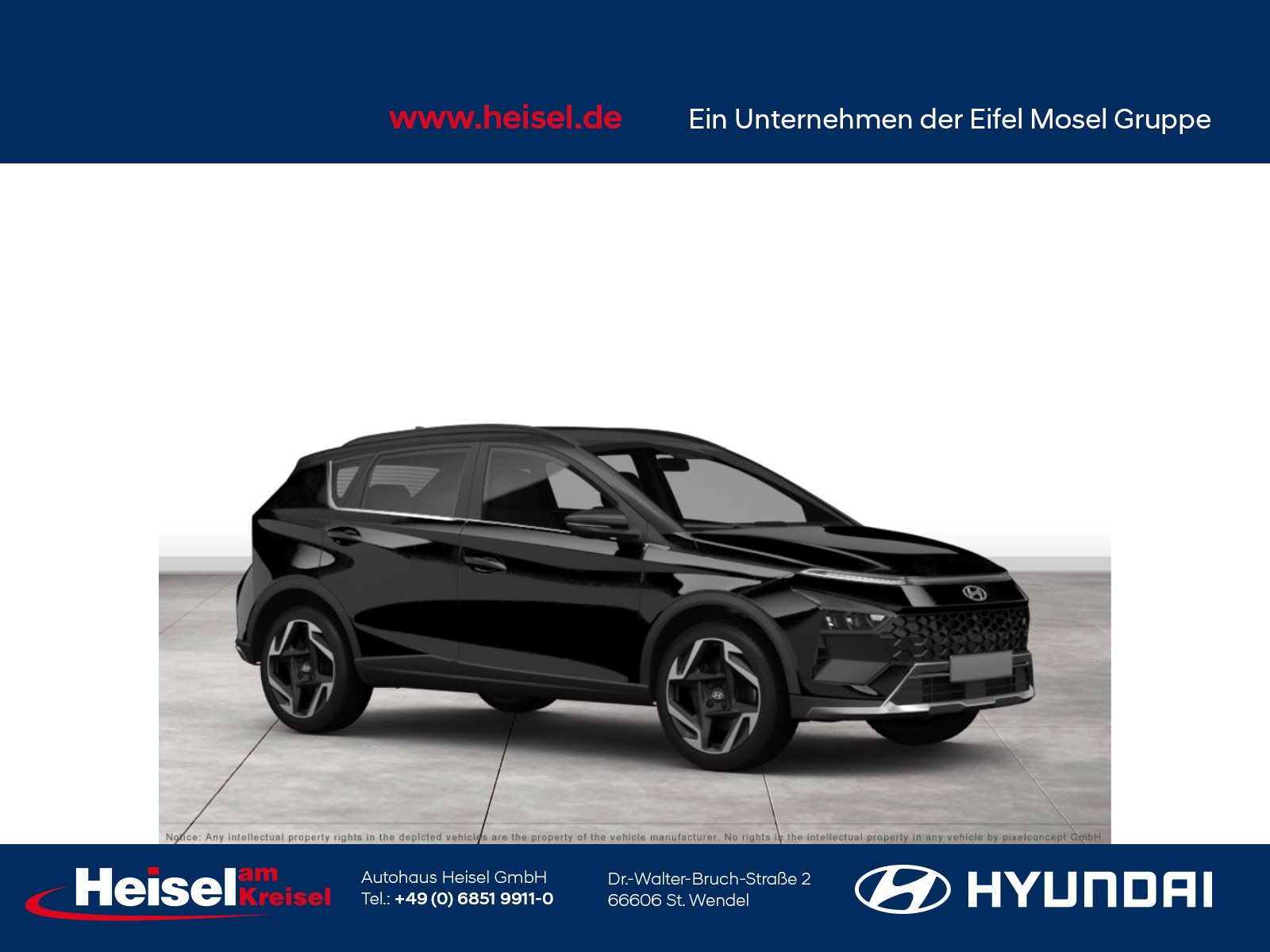 • Sonstiges: 3. Bremsleuchte, 6 Lautsprecher, Antriebsart: Frontantrieb, Außenspiegel lackiert, Blinkleuchte in Außenspiegel integriert, Dachspoiler, Fahrassistenz-System: Fahrprofilauswahl (Drive Mode), Fahrassistenz-System: Insassenalarm (ROA), Fahrassistenz-System: Multikollisionsbremse (Multi Collision Brake), Gepäck-/Laderaumleuchte, Getriebe 6-Gang, Gurtstraffer, Heckscheibe heizbar, Karosserie: 5-türig, Kopfstützen hinten verstellbar, Kühlergrill schwarz (mattlackiert), Lenkrad (4-Speichen), Lenkrad (Leder) mit Multifunktion, Modellpflege, Motor 1,0 Ltr. - 74 kW TGDI KAT, Radstand 2580 mm, Reifen-Reparaturkit, Schadstoffarm nach Abgasnorm Euro 6e, Schalt-/Wählhebelgriff Leder, Service-System: Online Update OTA (Over The Air), Service-System: Remote Services (Blue Link), Sicherheitsgurte vorn höhenverstellbar, Sitzbezug / Polsterung: Stoff, Sonnenblen...